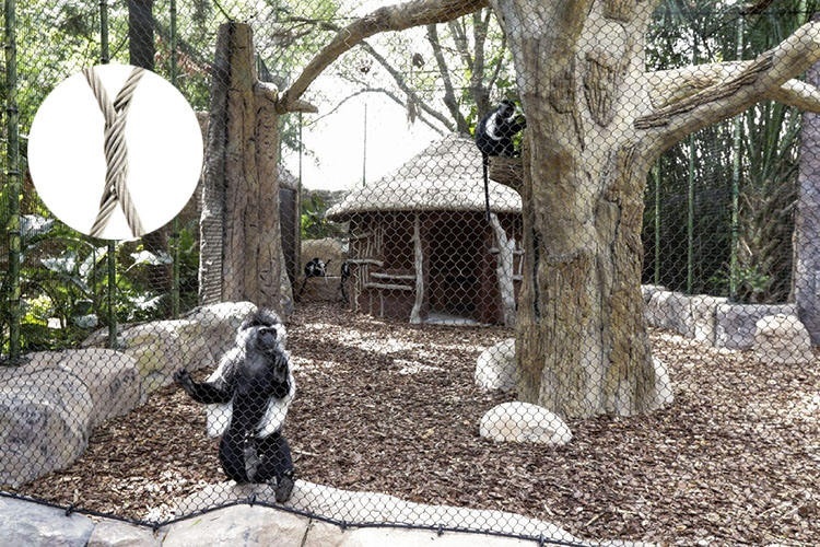 Our Monkey Enclosure Mesh Made of stainless steel wire rope mesh: AISI 304 or 316 stainless steel